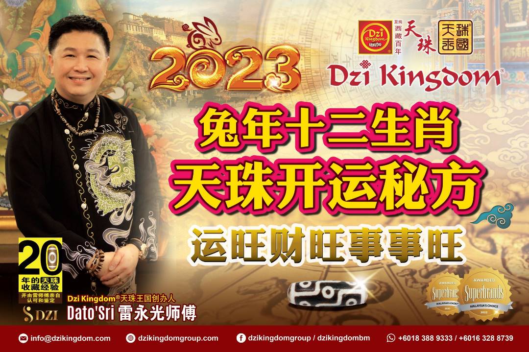 𝗗𝘇𝗶 𝗞𝗶𝗻𝗴𝗱𝗼𝗺天珠王国创始人Dato’ Sri雷永光师傅亲自批算的2023兔年12生肖流年运程及天珠开运秘方终于来了不同属相的人有不同的运势,但不管运势如何,都建议可以佩戴天珠手链、 天珠项链,让您在2023新的一年里越来越旺,顺顺利利。佩戴一个与生肖运程匹配的天珠可以让您在新的一年里事事顺利;哪里不好就补哪里!