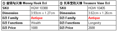High Soaring Wealth ◆ Money Hook Dzi + Treasure Vase Dzi